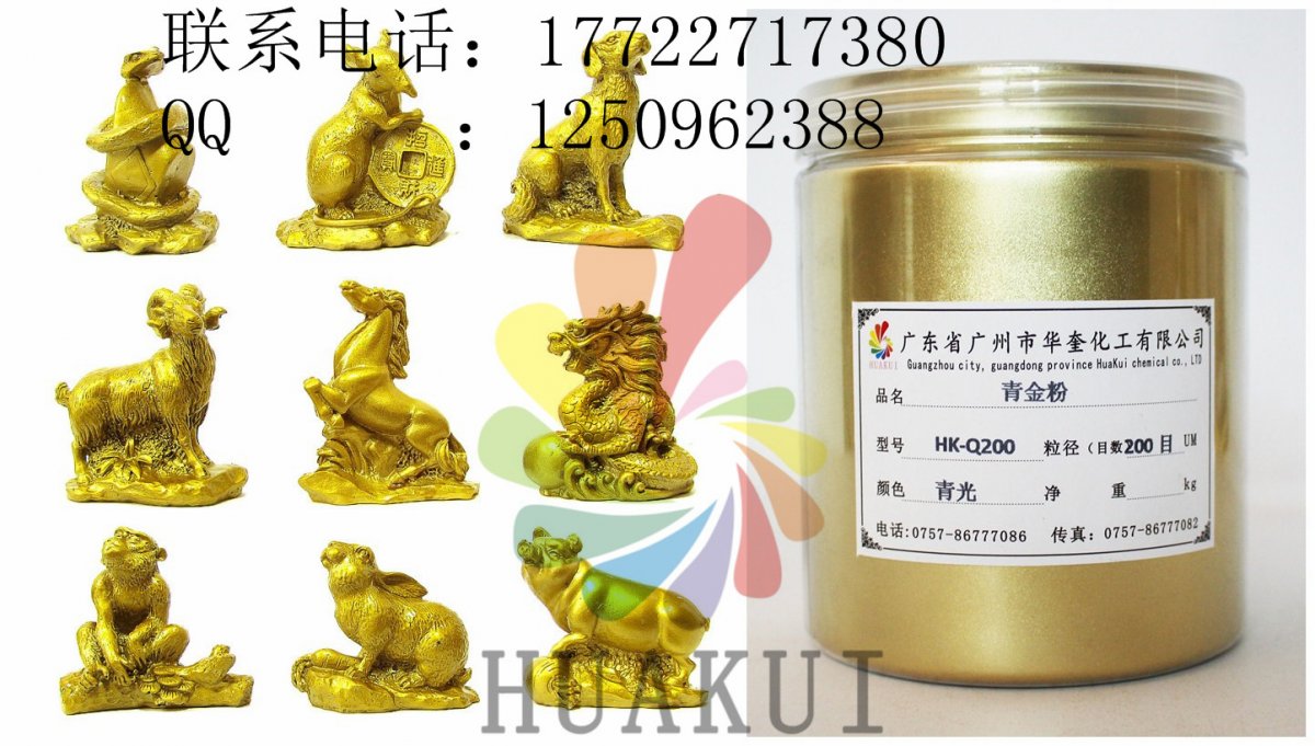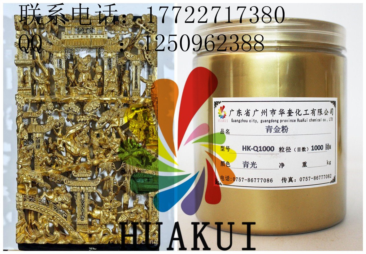 广州华奎铜金属粉是一种浮型片状颜料,由一定比例的铜、锌和铝合金,经熔炼、球磨、分级到所需要的规格和效果而成。铜金粉的色相可分为黄金粉、青金粉、红金粉、紫铜粉、古铜粉等。