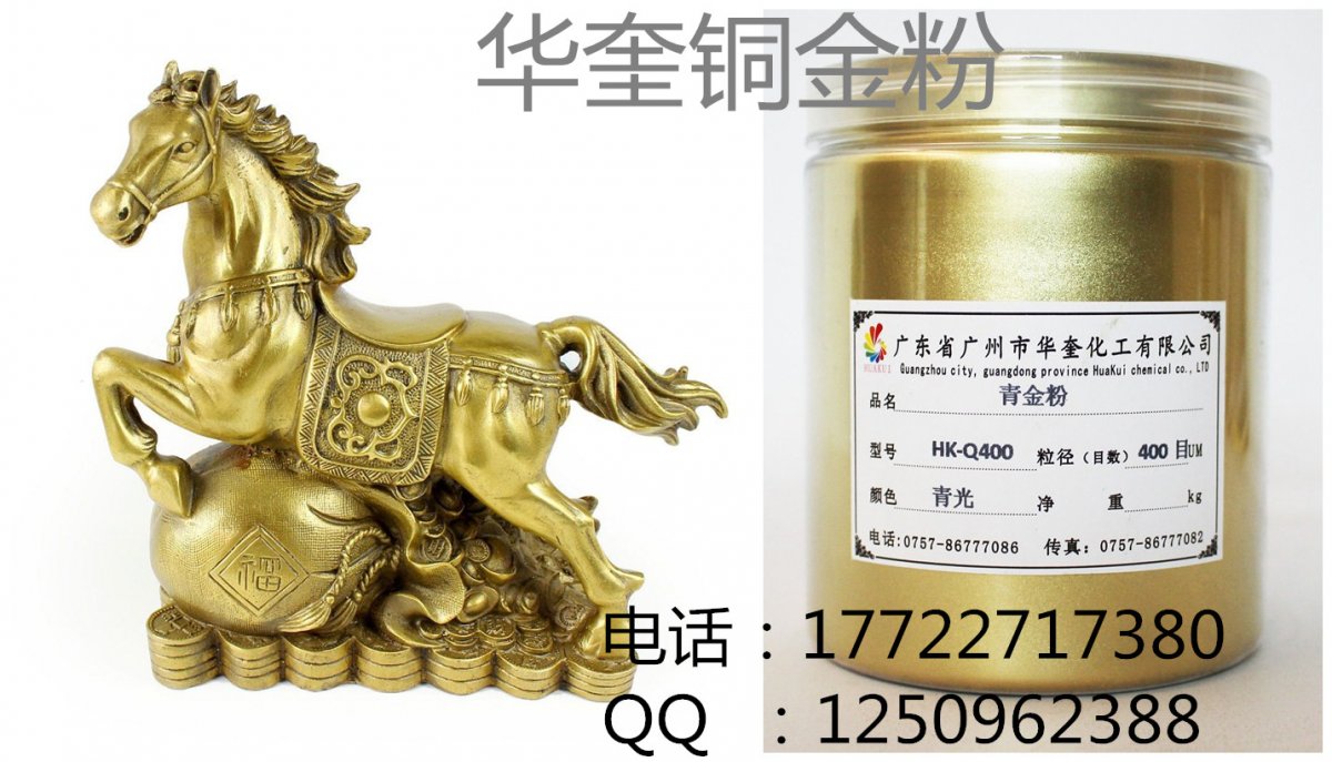 广州华奎金属粉是一种浮型片状颜料,由一定比例的铜、锌和铝合金,经熔炼、球磨、分级到所需要的规格和效果而成。铜金粉的色相可分为青金红金、紫铜古铜粉等。
