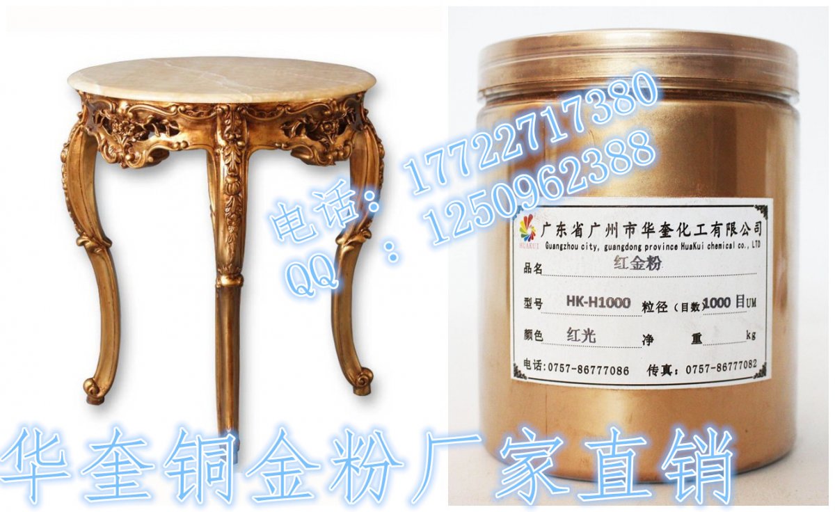 广州华奎铜金属粉是一种浮型片状颜料,由一定比例的铜、锌和铝合金,经熔炼、球磨、分级到所需要的规格和效果而成。铜金粉的色相可分为青金粉、青金粉、红金粉、紫铜粉、古铜粉等。