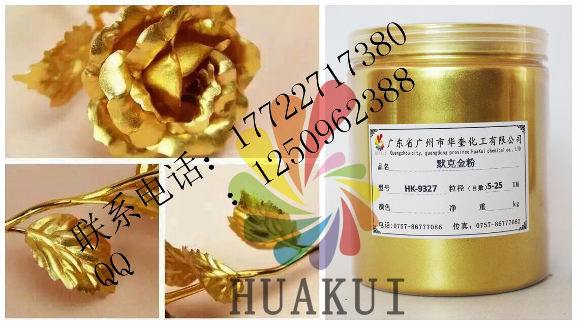 广州华奎金箔粉由新型合成高透明度片状晶体底材,包覆二氧化钛等金属氧化物组成,通过精密控制二氧化钛等金属氧化物的包覆厚度,产生黄金颜色一样的效果。特殊钻石珑光泽效果颜料赋予一个全新的、璀璨的、星光闪烁的、钻石般的光学维度空间及美妙的色调,这些富于情感的色彩及光泽,使终端产品的美丽、个性及品质得以充分的展示。