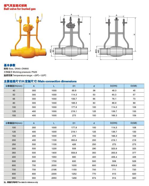 直埋式焊接球阀可以直接埋于地下,不用建高大型阀门井,只需在地面上设置小型浅井,大大节省施工费用及工程时间。
