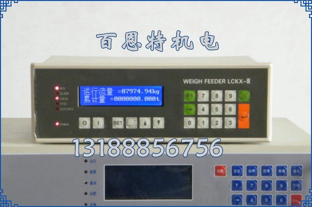一 :简介LCKX-III系列称重控制器采用国际**技术研制和生产的新一代配料仪表,是静态,动态计量和配料的专用智能仪表。它集计量与控制功能为一体,与恒速秤,调速秤,静态秤配套使用,实现各种物料的称重与配料。仪表采用专用单片机,全部隔离的模拟量输入输出及开关量输入输出接口,高性能的16位A/D,12位D/A转换器,配以RS-485通讯接口,可方便接入DCS系统。智能化PI输出可对变频器,滑差电机控制器等执行机构进行闭环控制,LCKX-III为液晶汉字显示。二 :系统功能1: 专用工业级控制微处理器,超强抗静电、抗干扰,确保系统运行稳定,可靠。2: EEROM保护参数,产量等数据永远不会丢失。3: 采用低温漂、低噪声放大芯片, 确保信号稳定。4: 二路模拟量输入,二路模拟量输出。模拟量输入:**65535个数字。 模拟量输出:一路0~5V(对应0~255),二路0~10 m A (对应0~1023)。5: 仪表具有运行自动校零、报警自动延时停机功能。6: 仪表计量精度:优于0.05‰7: 双排液晶汉字显示参数,20个工作按键, 5个LED指示状态。8: 可选择控制二种秤体:恒速秤调速秤。9: 速度为脉冲光电隔离输入(可选择为速度传感器提供12V电源)。11:可选择本地、远程及485控制启动、停机。12:0~10mA、0~20mA或4~20mA 外部设定量输入。13:0~10mA、0~20mA或4~20mA 当前流量输出。14:所有开关量输入、输出全光电隔离。15:传感器供电5V,电流150 mA。16:继电器输出信号:运行、备妥、报警、上限报警、下限报警和吨累计产量。17:仪表具有2级放大功能:一级硬件放大,二级程控放大。18:RS-485通讯接口,采用MODBUS通信协议,方便与PLC及其它设备联网。19:主机、AD、DA 、RS-485电源相互独立,确保输入输出互不扰。