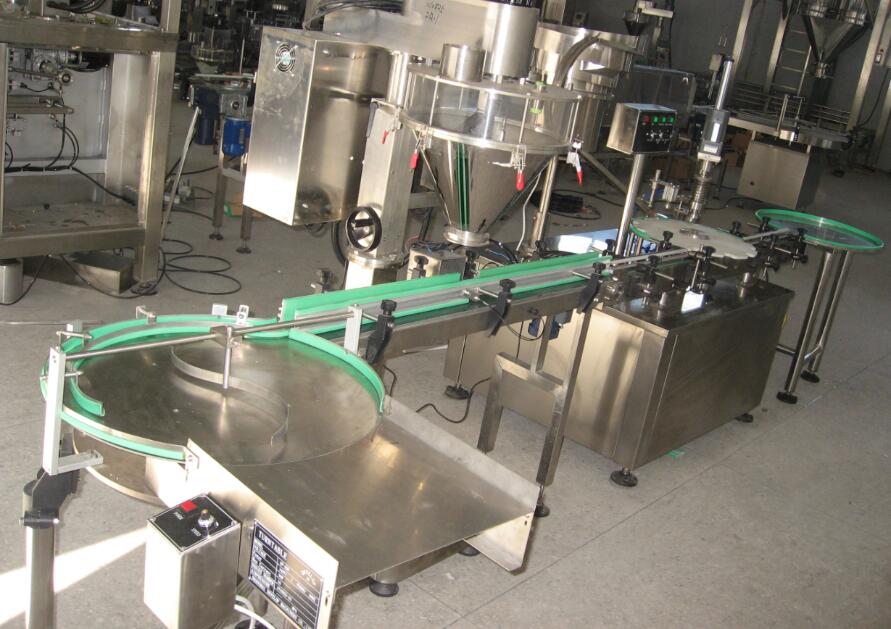 该机是一款经济实用的粉末及小颗粒自动灌装机,能完成瓶子自动定位、充填及计量等工作,它由一台螺杆计量机、一台链板输送带及一个气动定位装置组成,可与理瓶机、旋盖机、贴标机等组成整套灌装流水线。适用于包装粉末、小颗粒药品、奶粉、兽药、调味品、粉粒状添加济、葡萄糖、固体饮料、爽身粉、农药等。