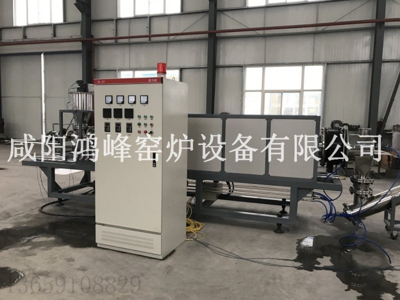 该设备为咸阳鸿峰窑炉设备有限公司自主设计的针对粉末活性炭的再生炉。设备特点: