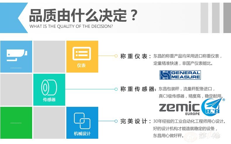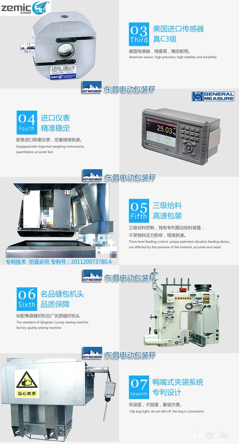 东昌所有定量包装秤产品都选用的是美国品牌的真C3级别的钢制传感器,他的精度和反应速度是国内产品远远达不到的。性能非常稳定。