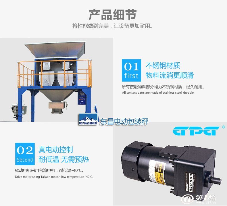 三、 优秀的材质,东昌包装机的所有接触物料部分为不锈钢材质,经久耐用,物料流淌顺滑。