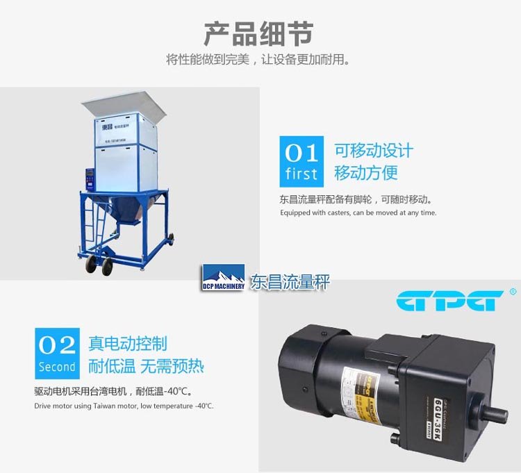 东昌电动流量秤的特点是,全电动控制,耐低温,耐粉尘,非常适合东北室外寒冷地区使用。电动控制稳定性高,不需要经常调节维护。可移动式设计,可以任意移动停放在任何位置。