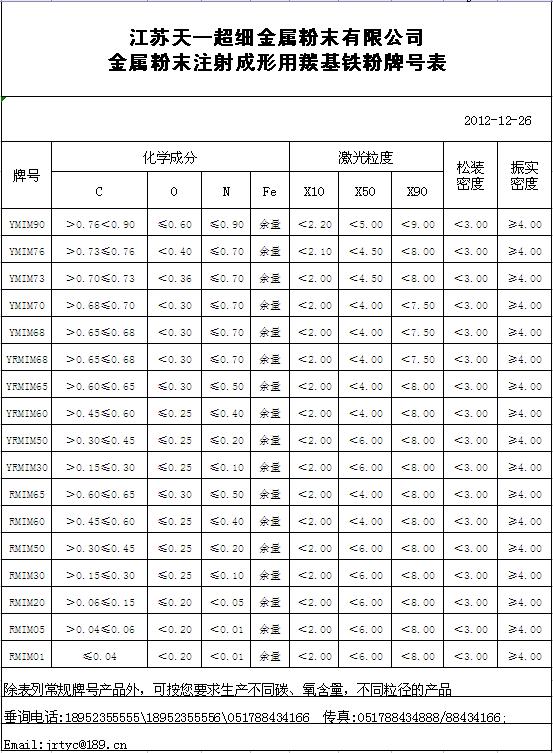 近年来,由于金属粉末注射成型技术使用材料的广谱性(涵盖单质金属、各类合金、不锈钢、陶瓷等),对大批量、微小型、复杂、精密零部件的适应性,得到了快速发展。因羰基铁粉具有适合金属粉末注射成型的粒径及粒径分布、球形及良好的流动性、较高的振实密度、较低温度的烧结活性,从而使制品容易得到高的烧结密度而被广泛使用。我公司自2001年从事羰基铁粉生产以来,密切配合业内专家研发MIM产品的需要,精益求精,形成了专门用于MIM制造的系列羰基铁粉产品。