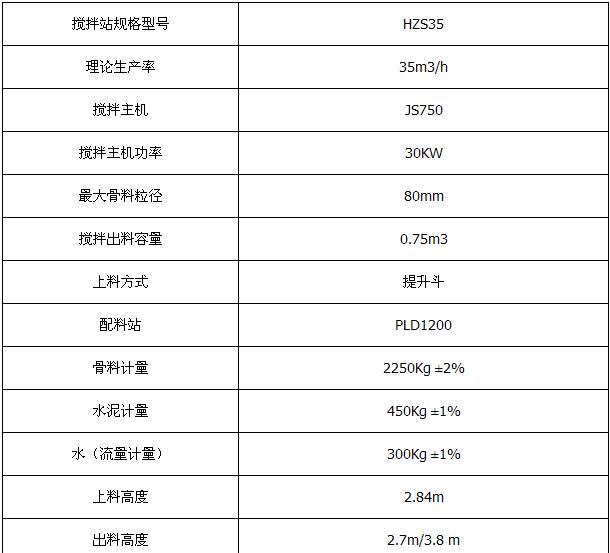 二、HZS35型工程混凝土搅拌站技术参数: