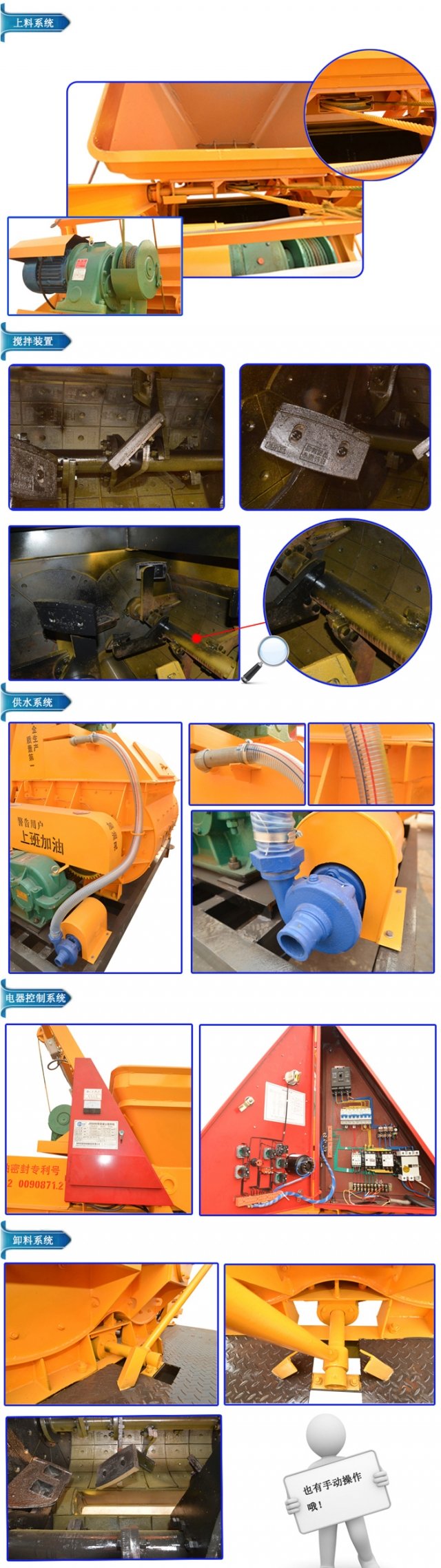 帝海机械生产的JS500混凝土搅拌机, 让你省心省力 ,从此不再为搅拌而担忧。采用**搅拌技术,使得搅拌机可以适应不用的混凝土搅拌需求,而且结构紧凑,外形美观。操作简便,用途广泛,搅拌各种混凝土。 500双卧轴搅拌机操作简便,既能搅拌干硬性混凝土,又能搅拌塑性混凝土,还能搅拌砂浆和轻骨料。 双重优越性:既能作为单机作业,也可作为搅拌站的配套主机。 500型搅拌机可与PLD800三仓配料机组成搅拌站配合使用。 独特的地开门卸料安全方便 采用此设计避免了搅拌桶倾翻,既安全又省力,并且简化了结构,布局也更合理紧凑。