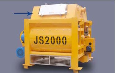 JS2000混凝土搅拌机的电动机直接与摆线针减速器连接,减速器两输出轴通过对开式齿轮分别带动水平配置的搅拌轴反向等速回转。