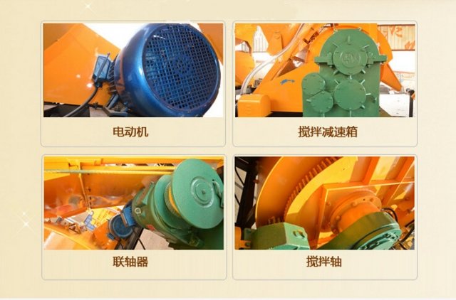 JDC500搅拌机的搅拌装置由搅拌筒,搅拌轴、搅拌叶片和轴端密封等部件构成。搅拌筒为整体焊接工艺,筒内装有两种衬板,其中侧衬板12块,弧形衬板77块。由沉头螺钉与筒体紧固连接。衬板为耐磨合金铸铁,耐磨性好,使用寿命长。