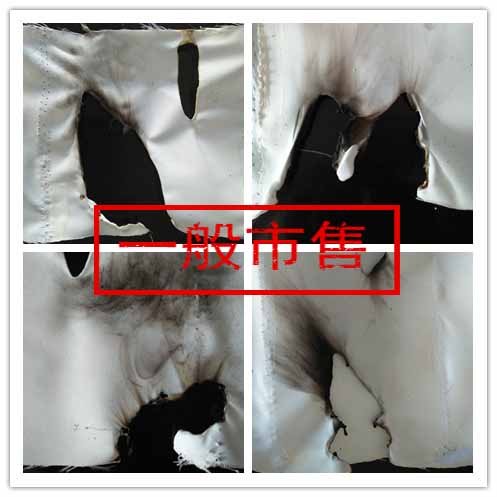 4、ZBS-500阻燃剂体系处理后的织物燃烧时不会出现熔滴现象,而普通阻燃剂处理后的织物有熔滴滴落;
