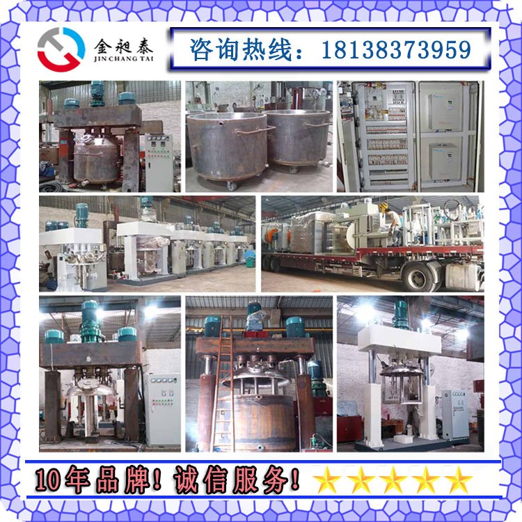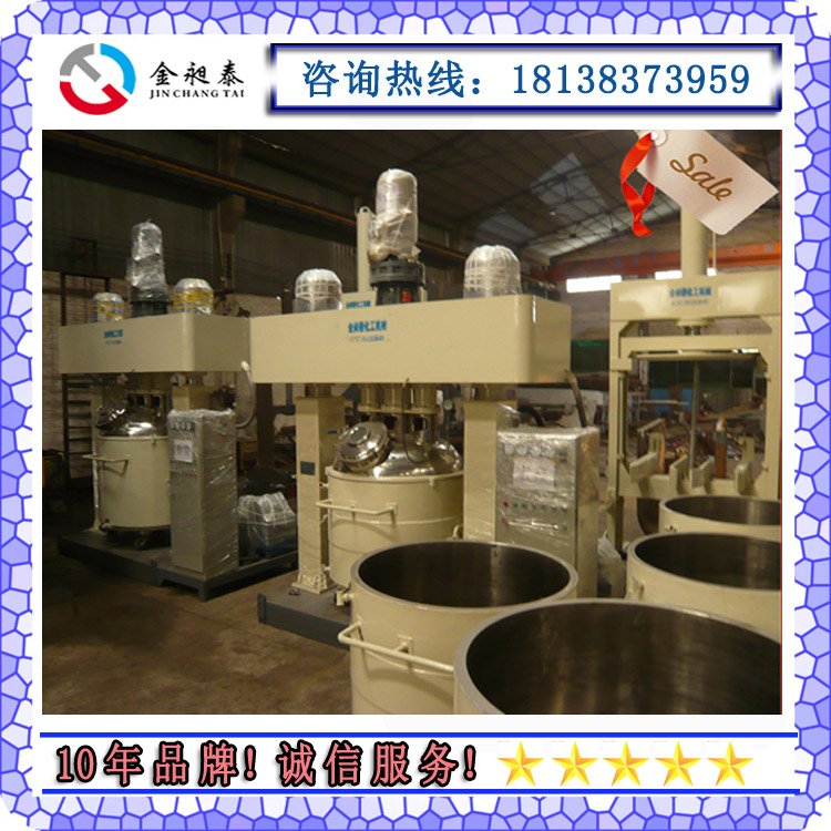 15kw强力分散机内山形刮壁刀绕釜体轴线转动,将粘在壁上和底部的原料刮出参与混合,使其效果更为理想。设备密封性好,可抽真空,具有良好的排气除泡效果。强力分散机缸盖可液压升降,缸体可自由移动,操作十分方便。强力分散机搅拌器的形式,根据物料要求可为多层桨叶式、框式、蝴蝶式、叶轮式等。
