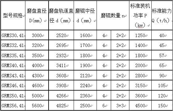 备注:(磨机选型基准) (1)原料中等易磨性(MFs)=0.9~1.0; (2)原料水分**15%; (3)成品细度:4200~4500cm²/g; (4)成品水分0.5~1.0%; (5)具体磨机装机功率和工艺参数根据物料的性质和业主要求加以适当调整;