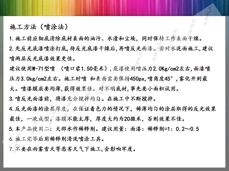 山海化工玻璃反光粉的使用方法 一、材料 反光粉、AB胶水 、AB底漆 二、制作方法 1、按一定比例调配好胶水。 2、两者混合后即加入天那水(AB胶水总重量的10%)稀释,30分钟内有效,随用随配。 3、玻璃洗净或平面喷砂。 4、将反光粉加入配好的胶水溶液中搅拌均匀。 5、用2.0或以上口径喷枪将上述溶液均匀喷在玻璃上,重复多次喷涂,直到所需密度,自干三小时或加温80度半小时即可。 6、以反光粉颜色为参照调配AB底漆,喷涂作为保护层,晾干或烘干。 山海化工反光粉厂家批发高折射灰色反光粉、白色、特细、超细反光粉、反光材料,进口3M反光粉,国产反光粉。 山海化工反光粉是由一种玻璃微珠粉体材料生产而成,分为三种折射率,即:ND≥1.90、ND≥1.93、ND≥2.2规格从150目——700目可分级提供,颜色有银灰色及白色供选择。 反光原理:当光线照射在微珠表面时,由于微珠的高折射作用而聚光在微珠焦点的特殊反射层上,反射层将光线通过透明微珠又重新反射到光源附近,所以在光源处能看到非常明亮的反射光。根据复杂的光学公式计算得出,当微珠的折射率大于1.9以上时,才能形成良好的回归反光效果。反光粉是生产反光布、反光革、反光贴膜、反光涂料等新型发光功能复合材料的核心元件,它具有回归反光的特性并由此产生较强的反射效应。 应用范围:反光粉是生产反光布,反光贴膜、反光油墨、反光标识、广告宣传材料、服饰材料、标准赛场跑道、鞋帽、书包、水陆空救生用品等新型光功能复合材料的核心原材料,它具有回归反光的特性并由此产生较强的回归反射效应,无需外加电源,可广泛用于道路、港口、矿山、消防等领域,作为安全标志,大大地提高了使用者的安全可靠性。广泛应用于丝网印刷、反光漆、反光油墨、交通标志、反光材料等各个领域。 反光片、反光布、反光膜(热贴膜、工程膜)、反光贴(车牌数字贴)、反光熔断、反光丝、反光革等,反光制品有:反光安全服、反光商标、反光路锥套、反光织带、反光晶格带、反光手腕带、反光包边条、反光车身贴、反光激光切割(雕刻)图标、反光校服、劳保服装等。应用于服装辅料、鞋、伞、帽、袋、箱、包、礼品、饰品等,以及道路工程,停车场、交通设施等等产品和场合。 产品包装: 25公斤/桶 可根客户要求包装