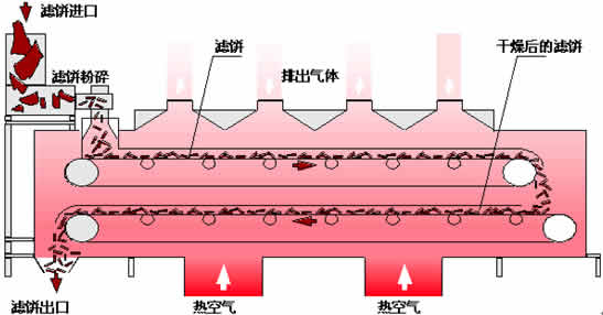 概述 将所要处理的物料通过适当的加料机构,如星型布料器、摆动带、粉碎机或造粒机,分布在输送带上,输送带通过一个或几个加热单元组成的通道,每个加热单元均配有空气加热和循环系统,每一个通道有一个或几个排湿系统,在输送带通过时,热空气从上往下或从下柱上通过输送带上的物料,从而使物料能均匀干燥。 用途 带式干燥机是常用的连续式干燥设备,可广泛应用于化工、食品、医药、建材、电子等行业,特别适合于透气较好的片状、条状、颗粒状物料的干燥,对滤饼类和膏状物料,也可通过造粒机或挤条机制成型后进行干燥。 典型产品 脱水蔬菜、颗粒饲料、味精、鸡精、椰蓉、有机颜料、 合成橡胶、丙烯纤维、药品、药材、小木制品、塑料制品、 电子元器件老化、固化等。 技术参数