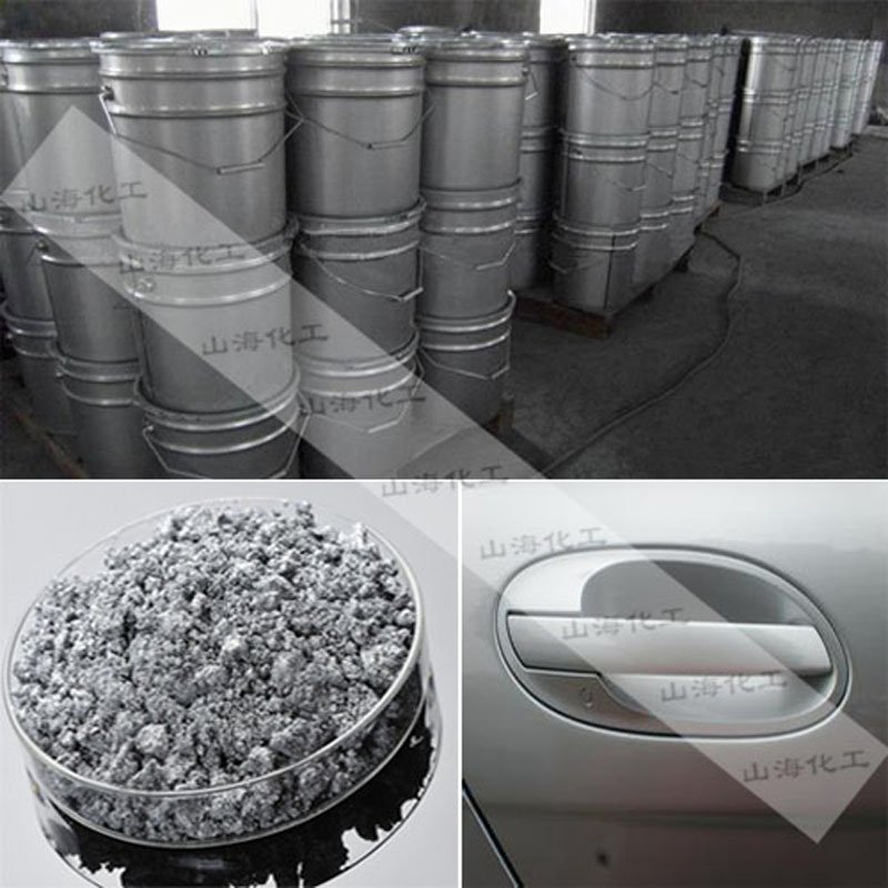 铝银浆广泛应用于汽车漆、摩托车漆、自行车漆、塑胶漆、建筑涂料、油墨、手机外壳及按键、机电外壳、电外壳、金属漆、等诸多领域. 使用方法: (1)、将适量的有机溶剂加到银浆中,缓速搅拌,过快的搅拌会破坏银浆的表面包覆物。 (2)、充分浸泡、分散、开封后应尽快使用,并要密封好 (3)、铝银浆不宜暴晒,接触雨水、并应保存在干燥的室内(35度以下)储存时间不宜过长,一旦拆开包装使用,应尽快用完,如无法一次性使用完,应立即将其完全密封,以防铝银浆中的溶剂,助剂挥发掉,放置时间过久,请在使用前检测。 存放须知: 1、存放于室内的封密罐中,存放温度为15~40℃。避免直接暴露于阳光、雨水或者过高的温度之中。 2、保证存放温度不低于15℃(在冬天或者周围温度等于或低于10℃时应特别注意)。 3、在运输途中过分颠簸震动、在某些条件下存放都可能导致铝和溶剂成分的部分分离。因此,在使用过程中切忌高速搅拌,以免破坏银片的形状。