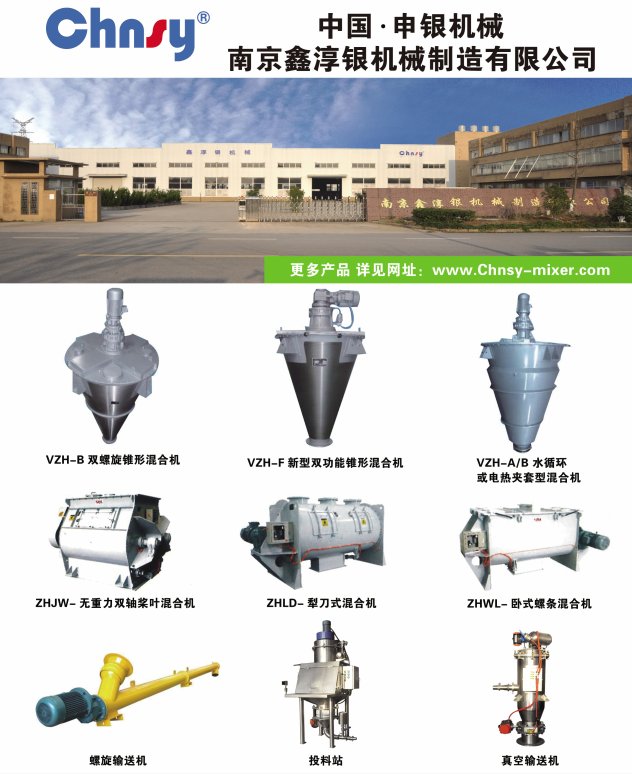 鑫淳银粉体混合专业制造商(立式双螺旋锥形混合机_喷液锥形混合机_水循环或电热夹套锥形混合机_卧式螺带混合机_犁刀混合机_无重力双轴桨叶混合机_食品混合机_染料混合机_颜料混合机_添加剂混合机_耐火材料混合机_锂电材料混合机_涂料混合机_干粉混合机_化工混合机_饲料混合机_冶金混合机_医药混合机_干粉砂浆混合机_腻子粉混合机)