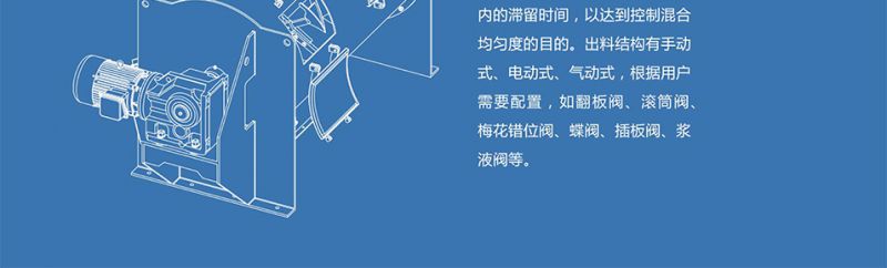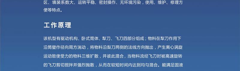 -更适合易结团的物料(如纤维或易受潮结团)混合、流动性较差的粉体物料混合、黏性物料混合、加液结块的粉体混合、以及低粘度流体混合;