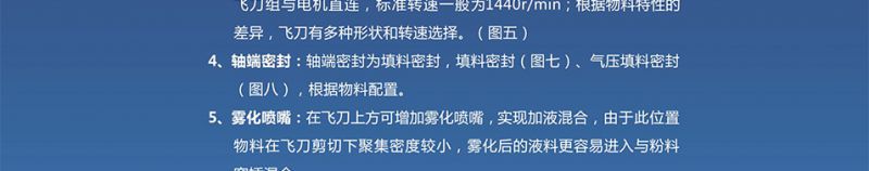 -不同的主轴搅拌器和飞刀结构的选择并组合,满足不同物料的优异混合效果;