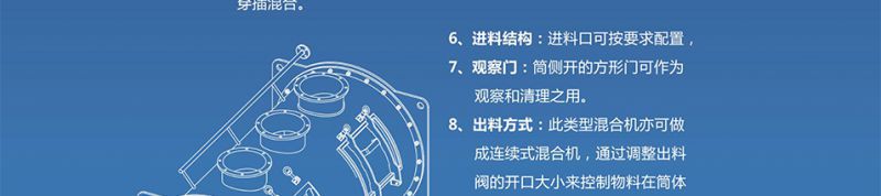 ★设备总高仅为同规格立式混合机的1/2,大大降低厂房高度;更适合与其他配套设备上下直联,减少了设备占地面积。