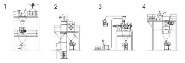 配置3:多级真空上料输送,混合储存后,再进行包装;