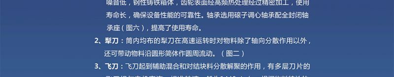 -更适合易结团的物料(如纤维或易受潮结团)混合、流动性较差的粉体物料混合、黏性物料混合、加液结块的粉体混合、以及低粘度流体混合;