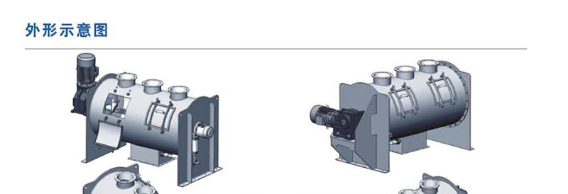 -更适合易结团的物料(如纤维或易受潮结团)混合、流动性较差的粉体物料混合、黏性物料混合、加液结块的粉体混合、以及低粘度流体混合;