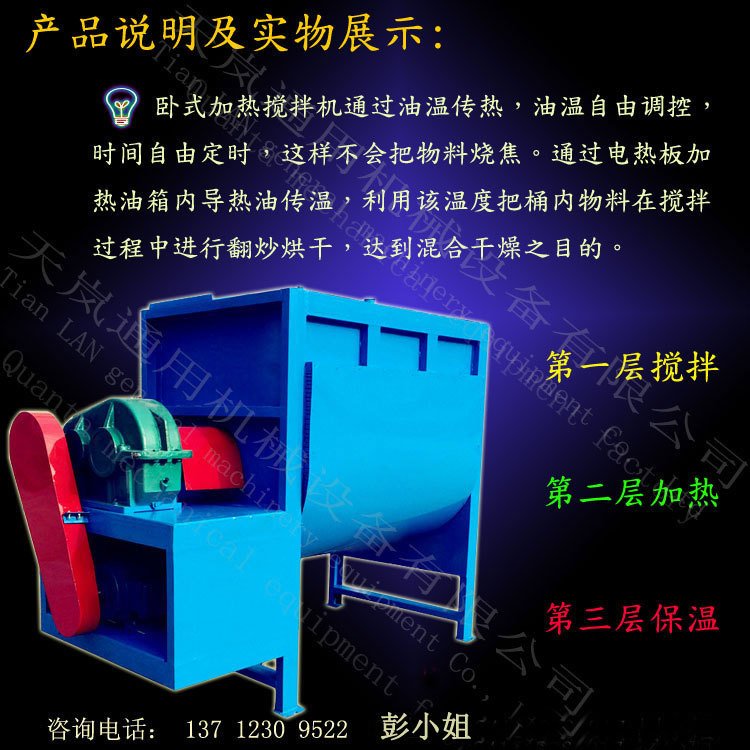天岚通用机械设备有限公司>卧式500kg卧式搅拌机 锯末加热烘干机 304不锈钢耐腐蚀搅拌机