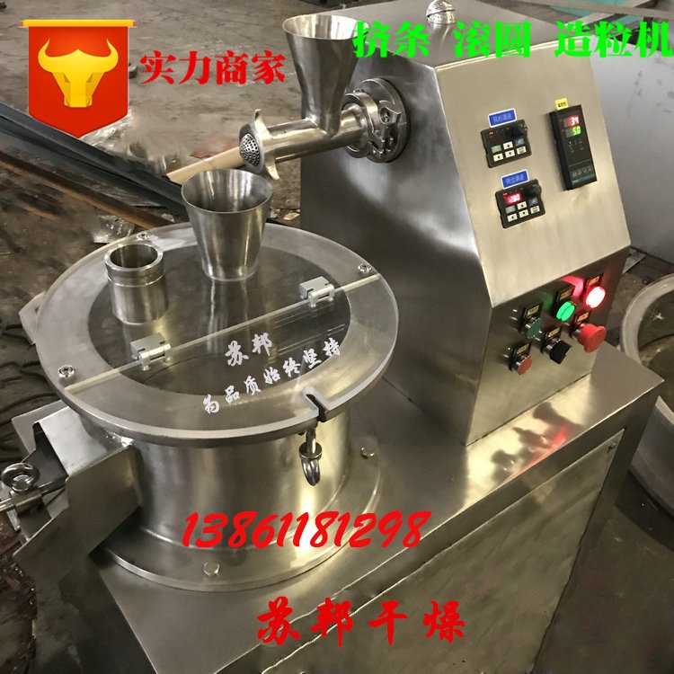 本系列挤出机由料斗、料筒、螺杆、模板、压板、机架、轴承系统、传动系统和电气控制系统组成。粉状物料与粘结剂混捏好后,经加料斗进入挤条机,经螺杆压实段压实后由模板挤出形成条状,颗粒形状为柱状、条状。该机可广泛应用于: 医药、农药、肥料、饲料、食品、催化剂、化学药品各大院校、制药企业、医院、科研院所的产品研发试验等行业的粉体造粒。