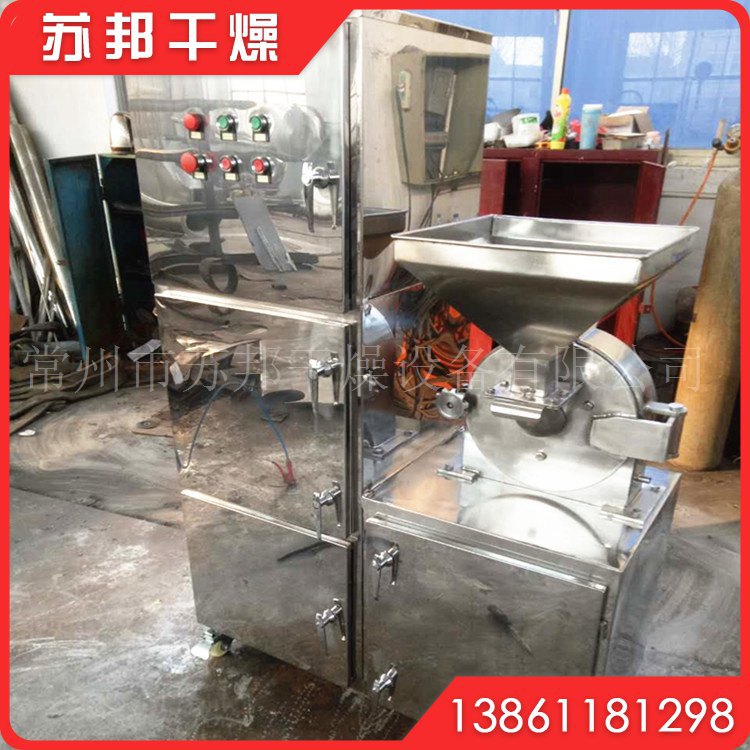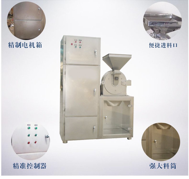B型**粉碎机组由粉碎机和集料箱两部分组成。适用于医药、化工、食品等行业,粉碎干燥的脆性物料,是新一代粉碎设备,它对软化点低,粘度大的物料不宜选用本机。