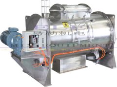 该机型由传动机构、卧式筒体、犁刀飞刀四部分组成;物料在犁刀作用下沿筒壁作对流运动,当物料流经飞刀时被高速旋转的飞刀抛洒,从而在较短时间内达到均匀混合。能满足大多固液混合以及造