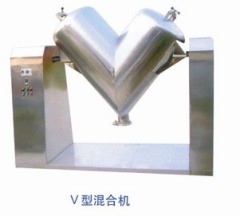 V型混合机是新型、高效、精细容器回转的搅拌型混合设备。用于各种粉末、粒状物料的均匀混合,具有很高的混合度。对添加量不同的配料同样能达到很好的混合度。该机采用机械密封,粉料不会泄漏。混合效率好,工作效率