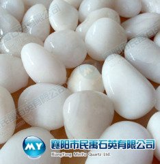 石英石矿料经过破碎,石碾碾压成砂粒,碾压时加水,水带着砂粉流入沉淀池内,再把沉淀池内的砂粉运入烤房烘烤成干粉,然后再经过振动筛筛分,在筛分过程中磁铁除铁,然后分装。技术指标外观:无色透明块状,颗粒或白