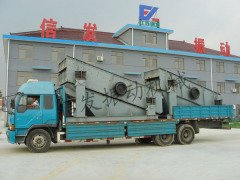 一、工作原理:振动筛工作时,两电机同步反向旋转使激振器产生反向激振力,迫使筛体带动筛网做纵向运动,使其上的物料受激振力而周期性向前抛出一个射程,从而完成物料筛分作业。适宜采石场筛分砂石料,也可供选煤、