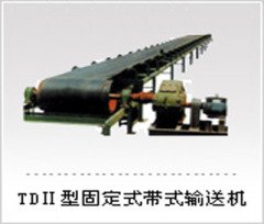 产品简介TDⅡ型固定式带式输送机主要部件如下:输送带、驱动装置(电机、减速器、液力偶合器、制动器、逆止器)或电动滚筒,传动滚筒,改向滚筒,托棍,拉紧装置,清扫器,缷料器,机架、漏斗,导料槽,安全保护装