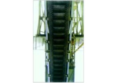 该系列产品主要用于散状物料的大倾角连续输送,采用具有波状挡边和横隔板的输送带。输送倾角为0—90。(70。以下**)其特点为:用一台设备在狭小的空间可完成水平倾斜输送,具有通用带式输送机水平或小倾角输