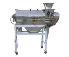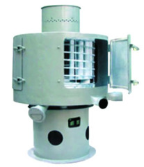工作原理本设备筛网为圆筒状,置于机体内,物料通过螺旋输送系统后,和气流混合、雾化进入网筒内;通过网筒内风轮叶片使物料同时受离心力和旋风推进力,从而迫使物料喷射过网,由细料排出口排出,不能过网的物料沿筒