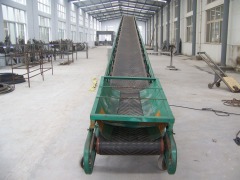 DJ型大倾角挡边带式输送机:一、概述该系列产品主要用于散状物料的大倾角连续输送,采用具有波状挡边和横隔板的输送带。输送倾角为0-90°(70°以下**),其特点为:用一台设备在狭小的空间可完成水平倾斜