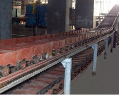 本机全称板式套筒滚子链斗式提升机(简称板链斗式提升机),按国家标准设计制造,采用重力方式卸料.以板式套筒滚子链为牵引件,食欲输送堆积比重小于每立方2吨.块度分辨为55.80.110毫米磨琢型物料,物料