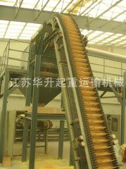 一、应用范围1.该机为一般用途的散状物料边续输送设备,采用的是具有波状挡边和横板的输送带。因此,特别适用于大倾角输送。2.该机可用于煤炭、化工、建材、冶金、电力、轻工、粮食、港口、船舶等行业,在工作环