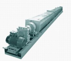 埋刮板输送机是一种在封闭的矩形断面的壳体中,借助于运动着的刮板链条输送粉状、小颗粒状、小块状等散料的连续输送设备。因为在输送物料时,刮板链条全埋在物料之中,故称为“埋刮板输送机”。埋刮板输送机工作原理