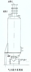 一、概述气力提升泵是一种垂直提升用的气力输送设备。它可以代替提升机,在提升高度超过30m时使用较为经济。气力提升泵设备结构简单,操作方便可靠,无粉尘、磨损小;但提升高度低时,电耗高于提升机。气力提升泵