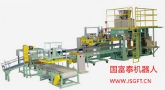 全自动称重包装码垛生产线概述一、全自动称重包装码垛生产线设备组成:1.自动供袋2、自动称重包装秤3、夹袋装置4、折边热合缝包机5.倒袋机6、金属检测机7、重量复检机8、输送剔除机9、喷墨打印机10、托