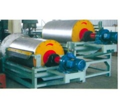 RCT(RCTG)系列永磁滚筒--概述:RCT(RCTG)系列永磁滚筒亦称磁滑轮或干式大块磁选机。其内部采用高性能高矫顽力的硬磁材料钕铁硼与铁氧体经磁路优化设计后所组成的复合磁系,具有磁场强度高、深度