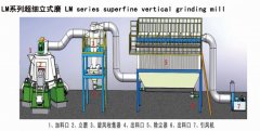 LM系列立磨-工作原理电动机通过减速机带动磨盘转动,物料从下料口落到磨盘中央,在离心力的作用下向磨盘边缘移动并受到磨辊的辗压,粉碎后的物料从磨盘边缘溢出,同时被来自喷嘴环(风环)高速向上的热气流带至与