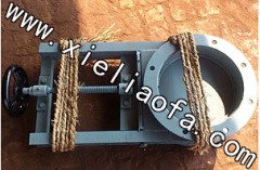 插板阀又称手动刀型闸阀,刀形闸阀它是一种闸板与阀座始终紧密接触密封的阀门,其原理是闸板上开有一个通径大小的圆口,通过闸板启闭使得闸板上圆口跟通径做完全脱离和相吻合的动作.此阀门的优点在于阀体通径无凹槽