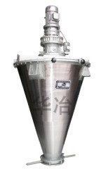 螺旋锥型混合机是针对粉体混合而开发的新型科研产品。两非对称螺旋的快速自转,物料向上提升、形成两股非对称沿筒臂由下向上的螺旋物料流(见图A、B)。转臂带动的螺旋公转运动,使螺旋外的物料不同程度进入螺柱包
