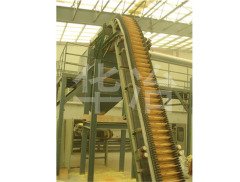 大倾角皮带输送机其结构是在平形橡胶运输带两侧粘上可自由伸缩的橡胶波形立式“裙边”,在裙边之间又粘有一定强度和弹性的横隔板组成匣形斗,使物料在斗中进行连续输送。挡边带式输送机可广泛用于煤炭、粮食、建材、